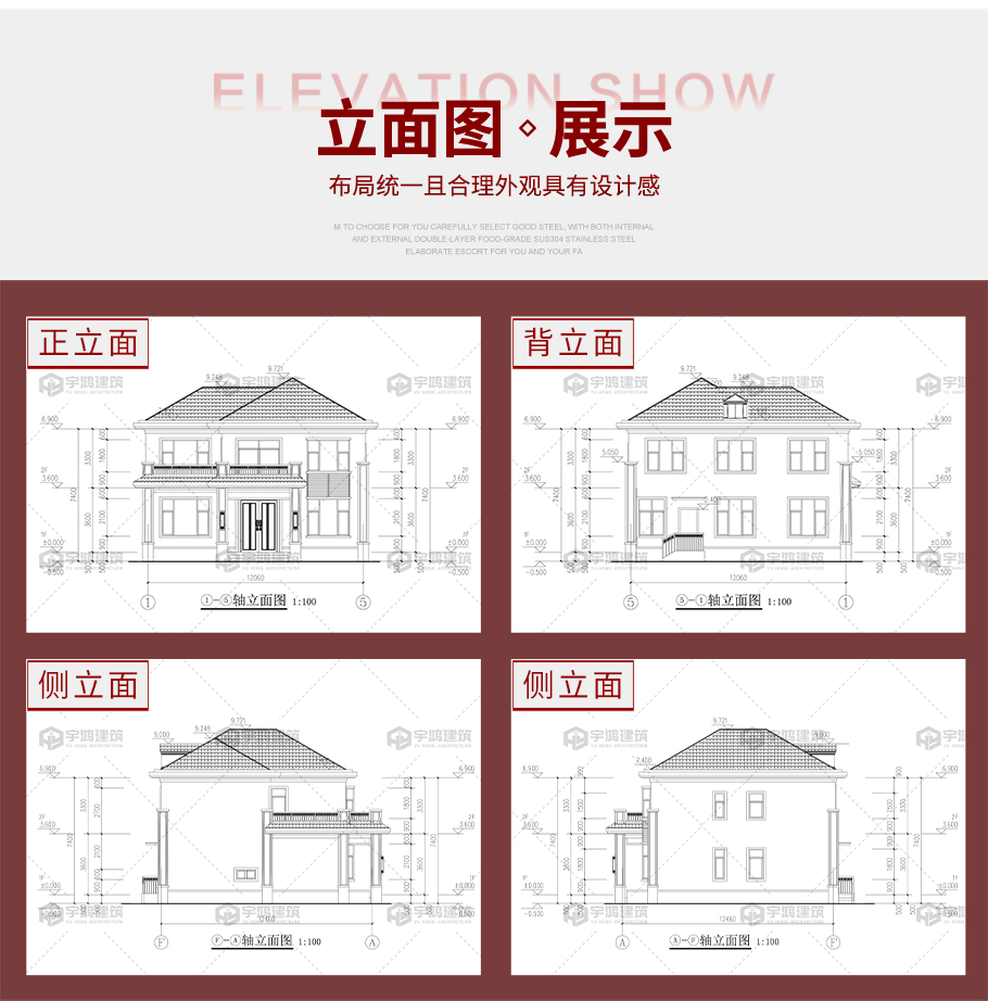 成品圖紙>新中式風(fēng)格框架結(jié)構(gòu)開間僅12.06米全套圖紙